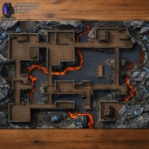 Posto Avançado da Fenda Vulcânica - Caverna Vulcânica com Estruturas de Madeira - (Médio) Battle grid, Mapa de Batalha, tabuleiro, RPG, War Game, D&D, Warhammer e outros
