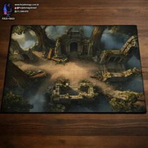 Ruínas do Santuário Esquecido - Floresta densa com ruínas de pedra ancestrais - (Médio) Battle grid, Mapa de Batalha, tabuleiro, RPG, War Game, D&D, Warhammer e outros